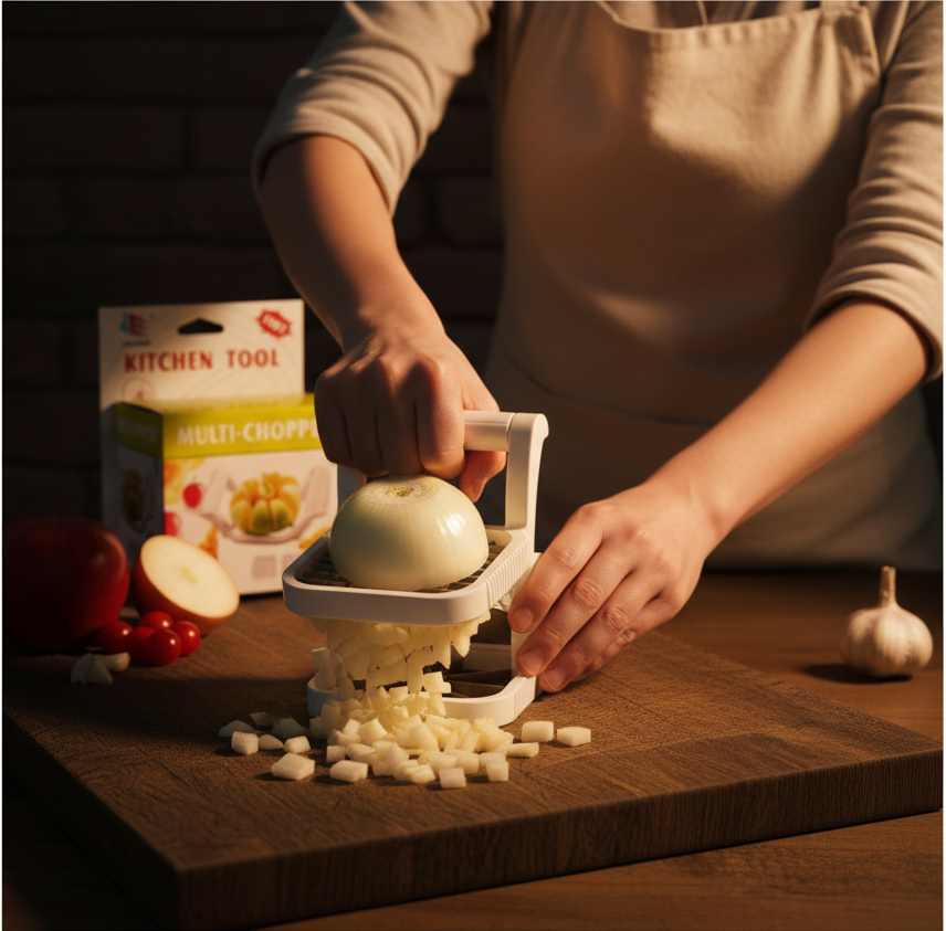 The Multi-Chopper 3 in 1 Apple Fruit or Potato Slicer is a must-have tool for every kitchen, offering quick and effortless slicing. Designed with sharp stainless-steel blades, it cuts fruits and vegetables evenly in one simple press. Whether preparing apples, potatoes, guavas, pears, or similar produce, this tool saves time while ensuring uniform slices. The ergonomic, non-slip handle provides a safe and comfortable grip, while the durable build ensures long-term use. Perfect for salads, desserts, snacks, and daily meal prep, this slicer makes kitchen work faster, cleaner, and more efficient.